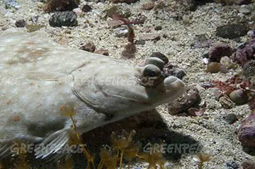 Close up of a Plaice, Inner Hebrides, North Atlantic. In a joint venture with Scottish Association for Marine Science (SAMS) Greenpeace document and research the destructive effects of bottom trawling on the cold water coral reef.